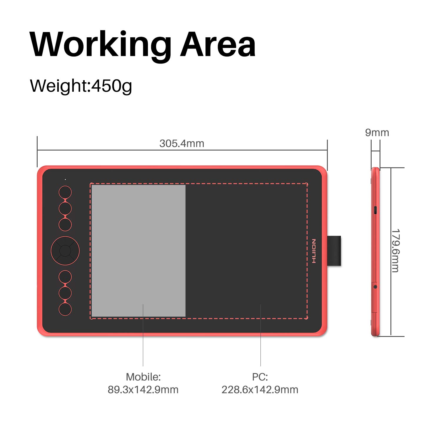 Ultrathin & Large Working Area – Only 9mm thick and weigh 450g, easy to carry the tablet&writing board around. 10.2×6.2 inch(LCD writing tablet side) and 9×5.6 inch(pen tablet side) sufficient working surface, provides you a carefree drawing experience.