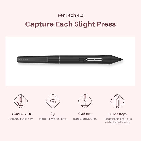 • Advanced PenTech 4.0 Technology: The 16384 levels of pressure sensitivity and 2g IAF ensure a fluid and natural drawing experience, while the 3 customized pen side buttons improve your workflow.