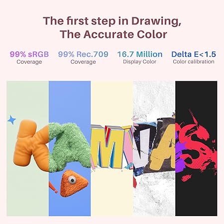 • Improved Color Accuracy: With enhanced color accuracy to Avg. ΔE<1.5, 16.7 million display colors, 99% sRGB coverage, and Rec.709 standard color gamuts, HUION Kamvas 13 Gen 3 digital art tablet delivers stunning visuals.